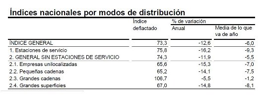 Por tipología de producto, en alimentación la caída fue del 5,9%, en las estaciones de servicio, un 16,2%, dejando un 16,8% de disminución en la comercialización del resto de artículos (equipo personal o del hogar, entre otros).