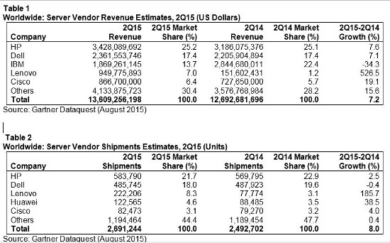 Por regiones, Norteamérica es la que más creció significativamente por unidades (14,8%) y por ingresos (14,7%). HP mantiene la primera posición del ranking con una cuota del 25,2%. La mayor progresión ha correspondido a Lenovo, que ha multiplicado por cinco su facturación en el segmento de servidores. IBM es el único que no ha crecido de los top 5.