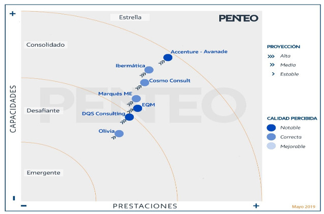 MARQUÉS ME: En el anterior universo Penteo analizado como Marqués Olivia, actualmente ofrece sus servicios de forma independiente a Olivia. Focalizado en soluciones ERP Dynamics de la línea Axapta y Dynamics 365. Dispone de oficinas en Cataluña y Madrid. Dirige sus servicios sobre todo a los sectores de Industria, Servicios y Distribución.