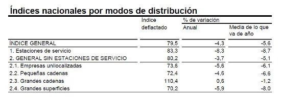 Por otra parte, las grandes cadenas fueron el único modo de distribución que aumentó sus ventas en comparación con mayo del pasado ejercicio –lo hizo en un 0,6%-, mientras que en el caso de las grandes superficies el descenso rozó el 6%. Eso sí, en el acumulado de 2012, el dato sigue siendo negativo.